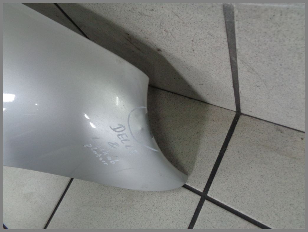 Der Kotflügel ist in einem gebrauchten Zustand. An der markierten Stelle ist leider eine größere Delle vorhanden. Der Kotflügel muss aufgearbeitet werden.