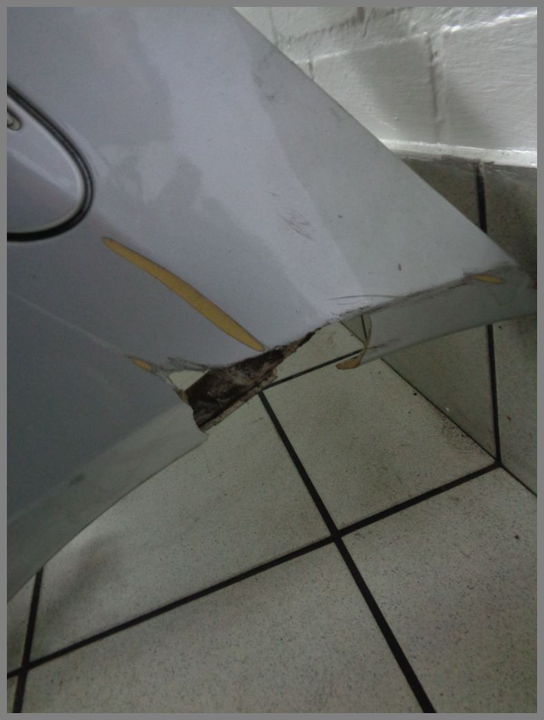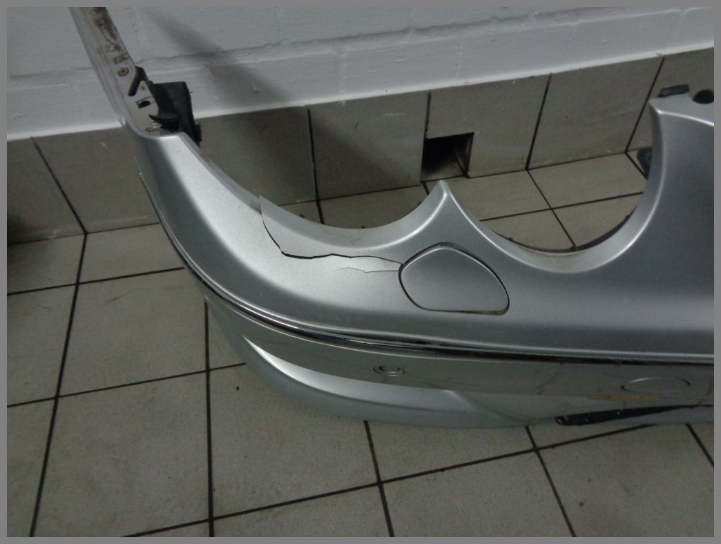 Die Stoßstange ist in einem gebrauchten Zustand. Die Stoßstange ist gerissen und defekt.  Die Stoßstange muss auf jeden Fall NEU lackiert und aufgearbeitet werden.