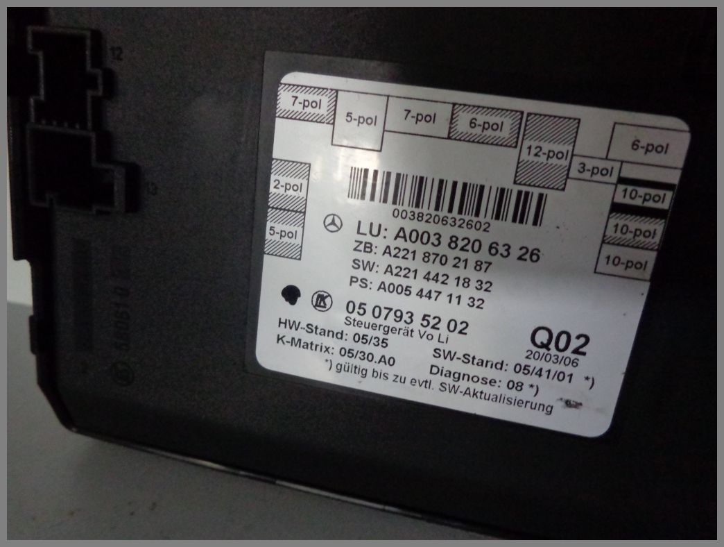 Produktinformationen "Mercedes Benz W221 S-Klasse Türsteuergerät Steuergerät Vorne LINKS 0038206326"
